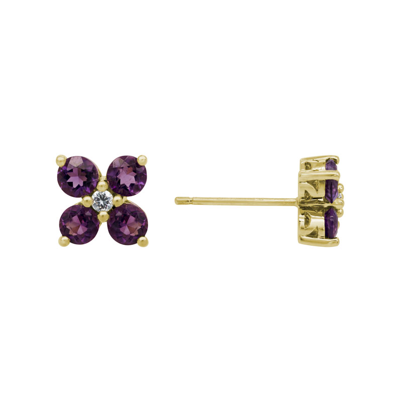 Four Petal Stud Earrings w/ Amethyst