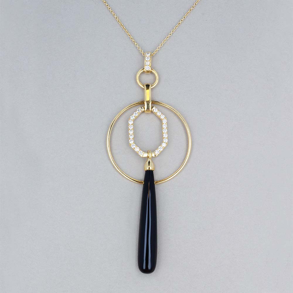 Onyx = 9.91 Carats, Diamonds = 0.47 Carats