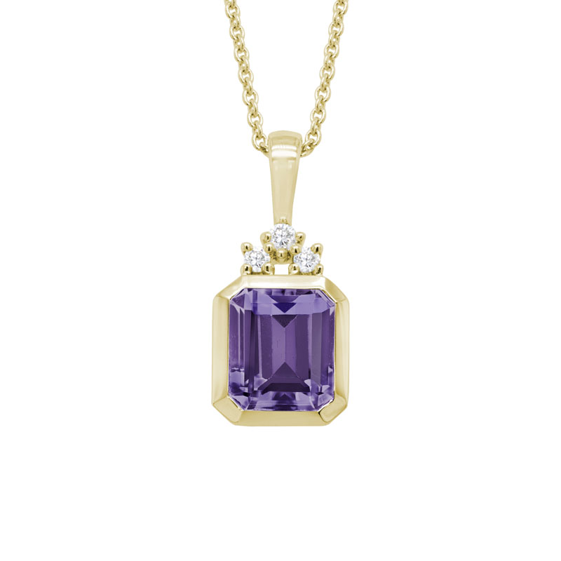 Amethyst = 1.20 carats, Diamonds = 0.05 carats total