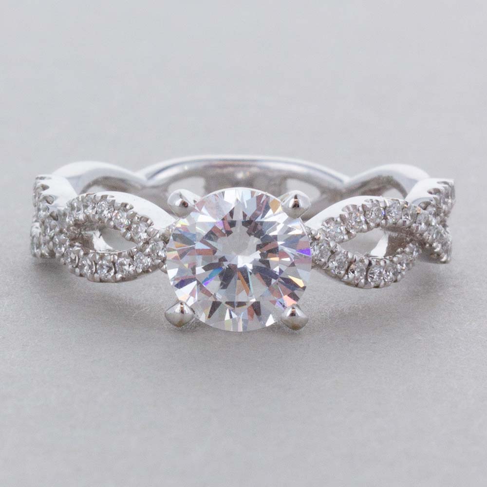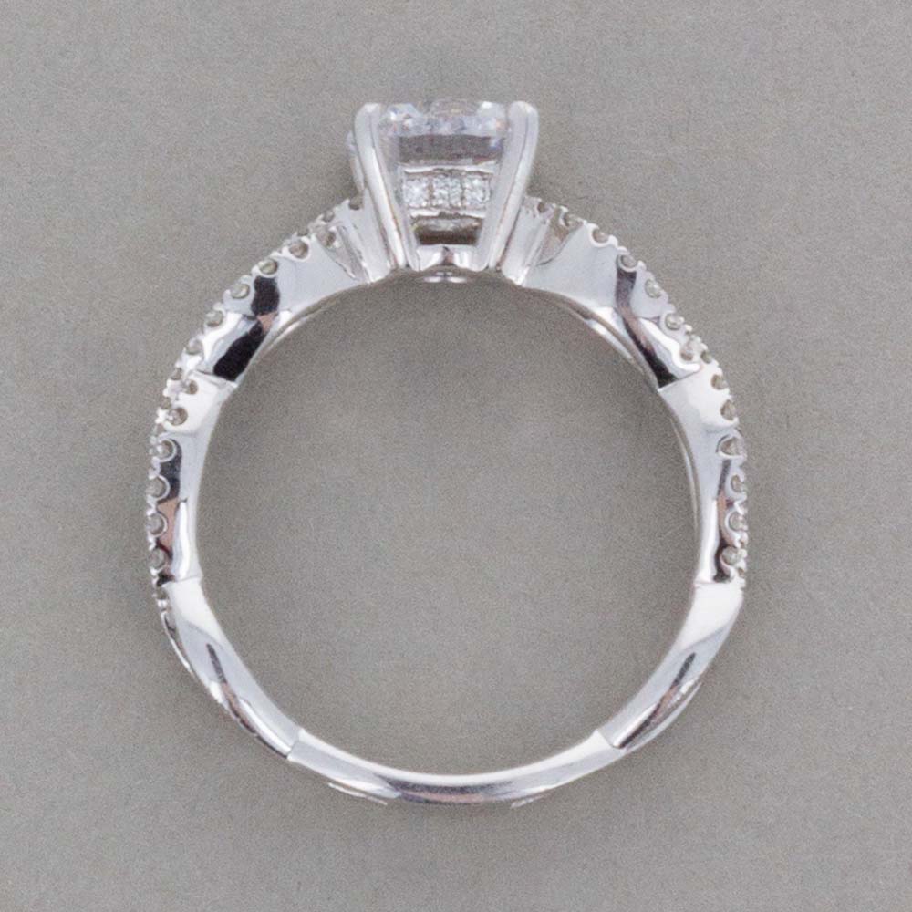 - Our stock ring is a finger size 6.25 and fits a 1 carat round center (shown here)