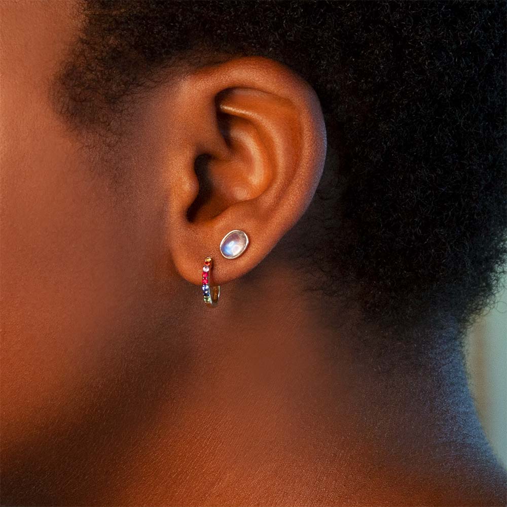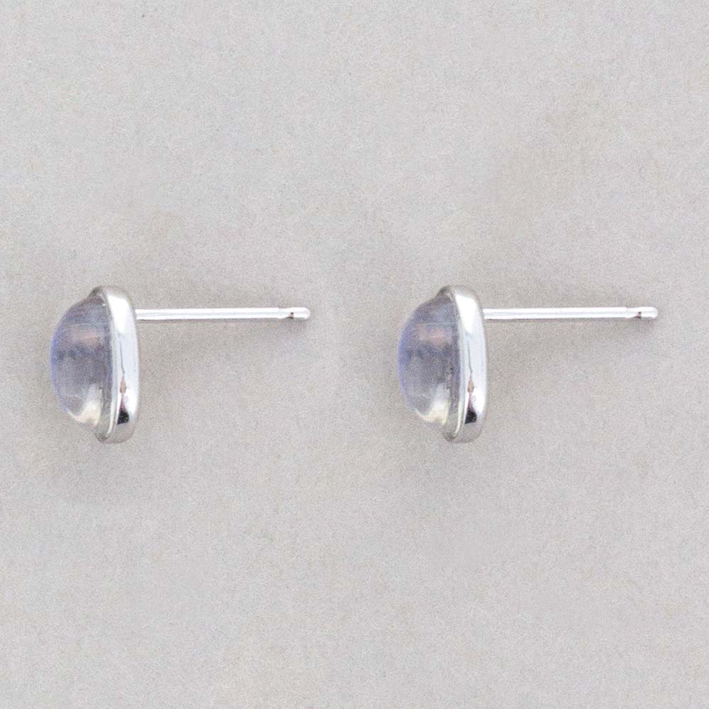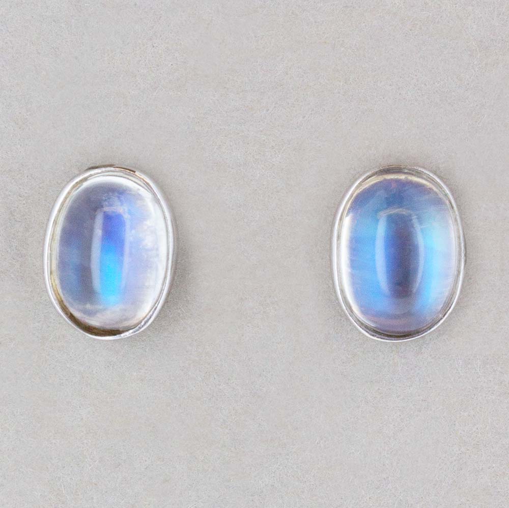 STEVE QUICK ORIGINAL EARRINGS HANDMADE WITH POSTMARKET RECYCLED 14K WHITE GOLD WITH 2 BEZEL SET OVAL MOONSTONES WEIGHING 1.70 CARATS TOTAL, ON POSTS WITH FRICTION BACKS