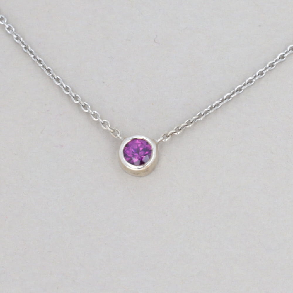 STERLING SILVER LAYERING NECKLACE WITH ONE BEZEL SET ROUND GARNET