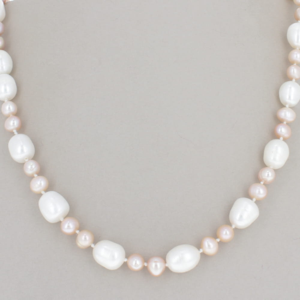 ESTATE CULTURED PEARL NECKLACE WITH ASSORTED WHITE AND BLUSH BAROQUE CULTURED PEARLS. THE NECKLACE IS A CONTINUOUS STRAND MEASURING 68" (NO CLASP)
